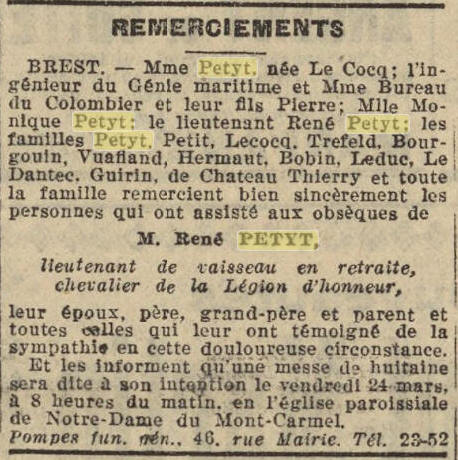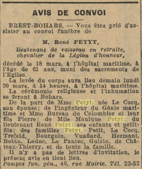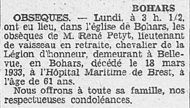 (Pas de Calais) - Décédé le 18 mars 1933 à BREST (Finistère)