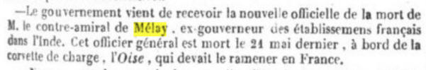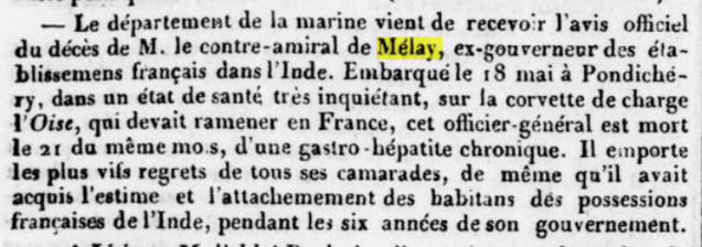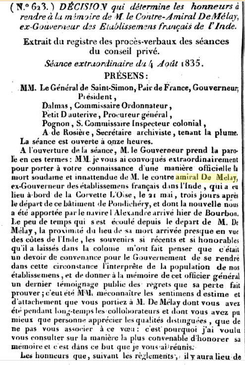 l'Inde française entre le 11 avril 1829 et le 3 mai 1835