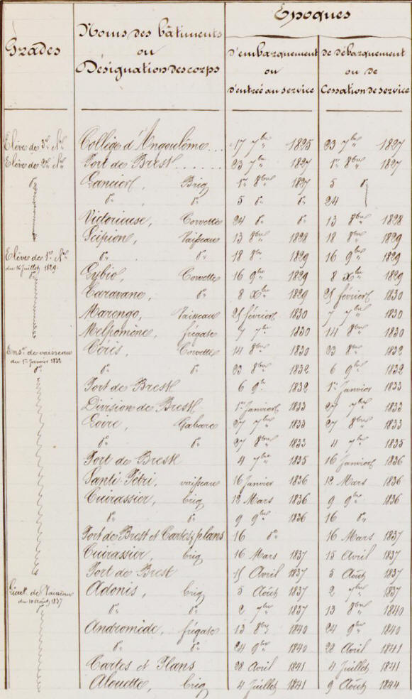 Etats de service jusqu'en 1860