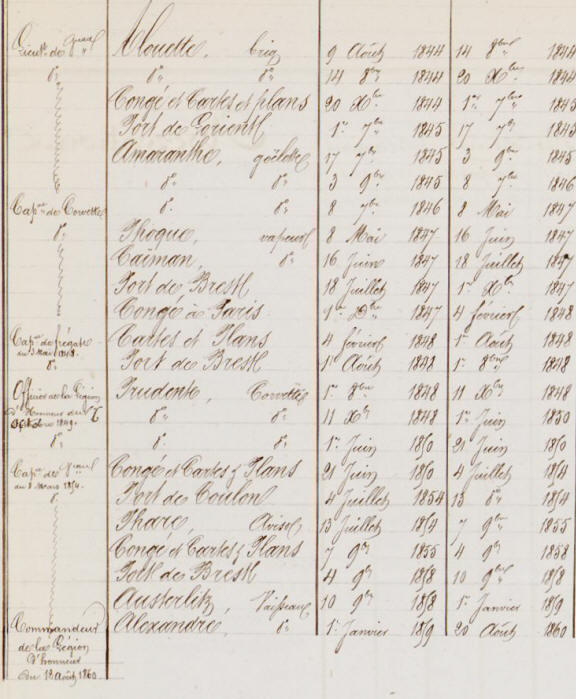 vaisseaux "AUSTERLITZ" en 1858-1859, puis "ALEXANDRE" en 1859-1860,