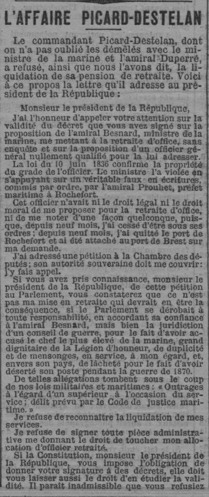 Né le 5 janvier 1843 à BREST (Finistère) - Décédé le 23 janvier 1898