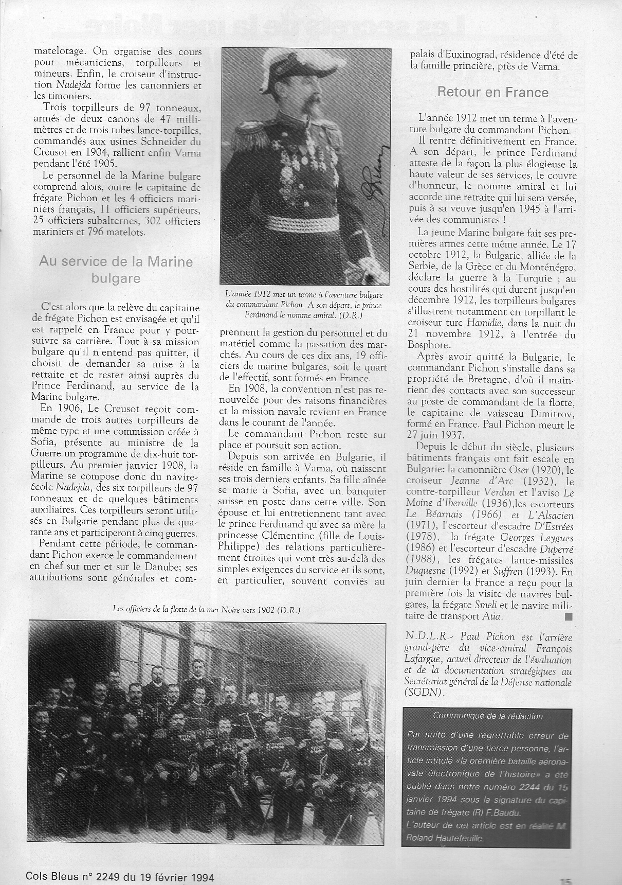 de la Marine bulgare" par le lieutenant-colonel Belony - Cols Bleus