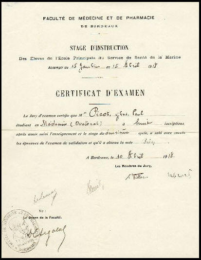 1914-1915 / Ecole de Santé de Bordeaux / Remerciements Marianne