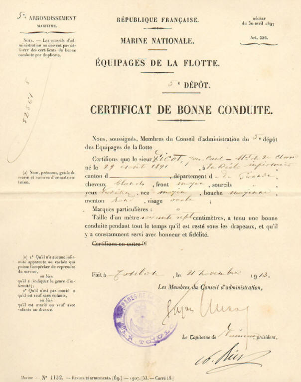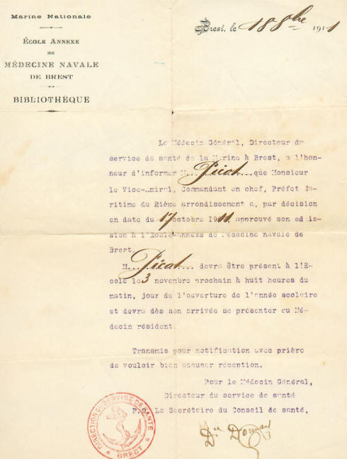 Engagé dans la Marine 1912 – Elève de l’Ecole de Médecine navale de
