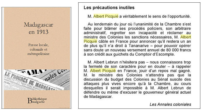 Madagascar de 1910 à 1914 (voir son action par Yvan Paillard, dans