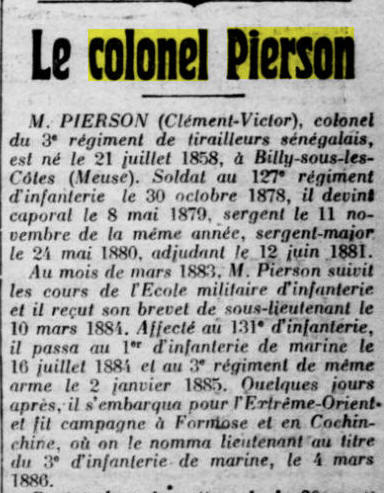 Au 1er janvier 1886, en service au 3ème RIMA en COCHINCHINE.