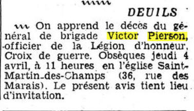 Officier de la Légion d'Honneur rang du 20 janvier 1915, étant