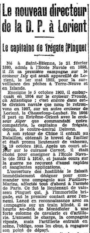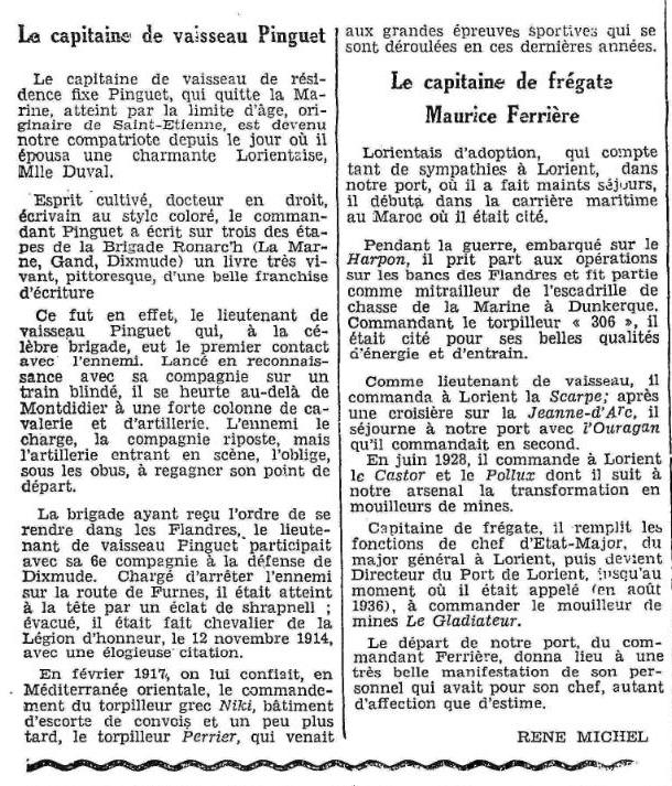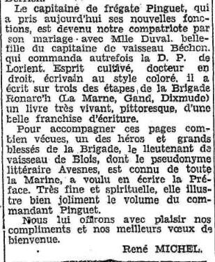 Extrait Le Nouvelliste du Morbihan / 21 octobre 1928