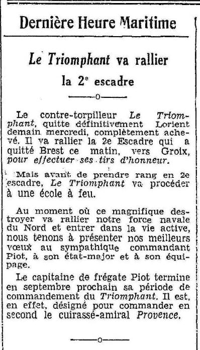 les travaux d'achèvement du contre-torpilleur "TRIOMPHANT".