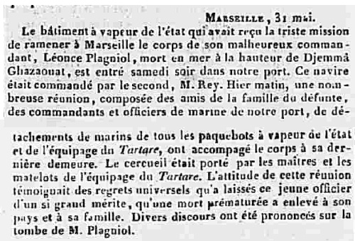 mai 1846 à bord du vapeur Tartare, à l’âge de 34 ans, déclaré à