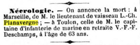 Décédé en janvier 1882 à MARSEILLE (Bouches du Rhône)