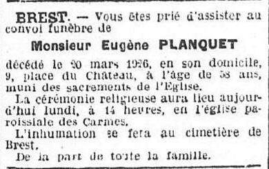 (Finistère) - Décédé le 20 mars 1926 à BREST (Finistère)