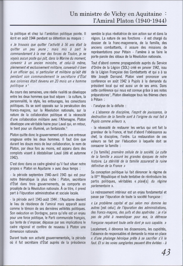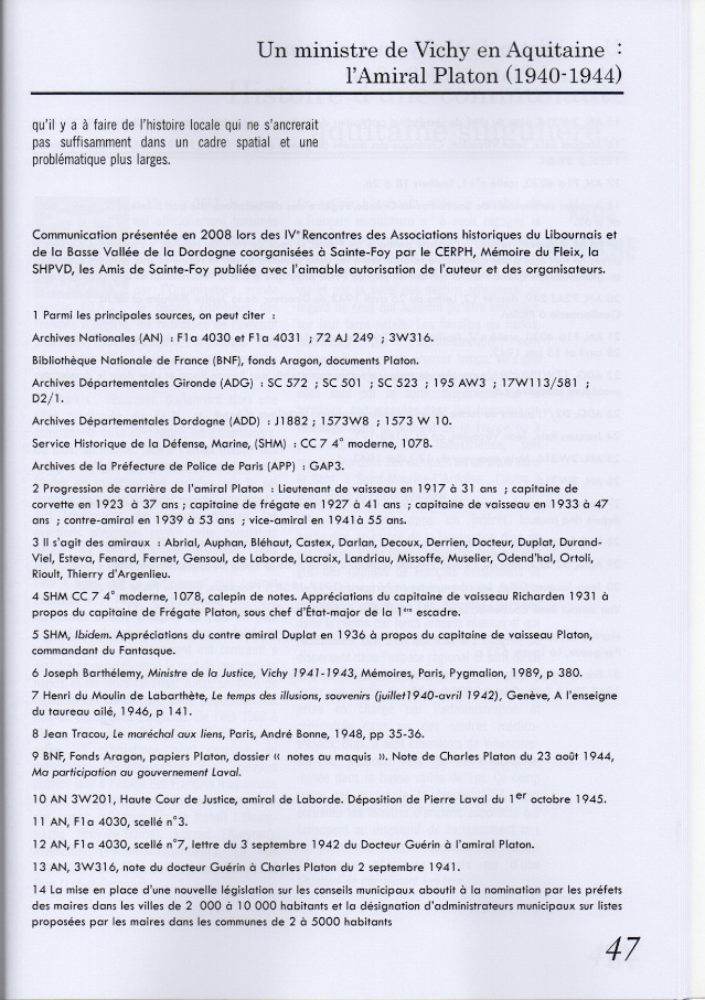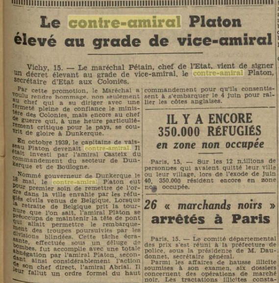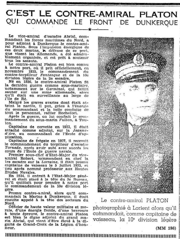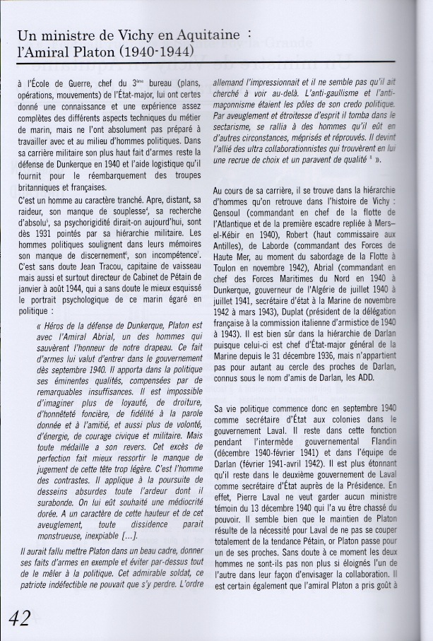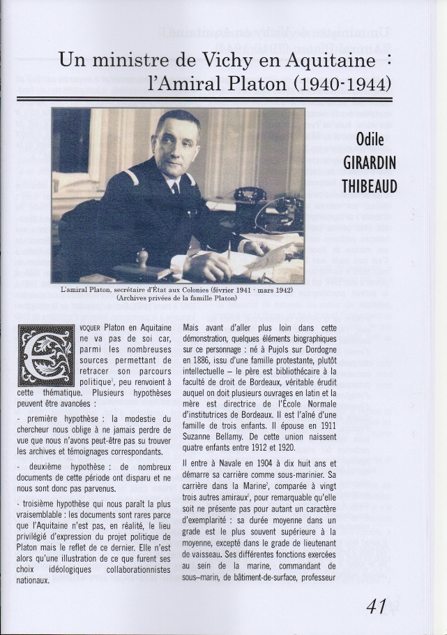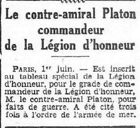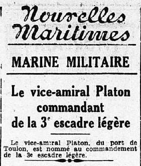 (1) "Le Vice-Amiral Platon (1886-1944) ou les risques d'un mauvais