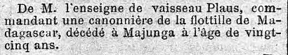 (Basses-Pyrénées) - Décédé le 29 juin 1895 à MAJUNGA (Madagascar),