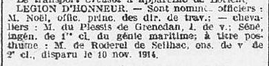 avait été nommé chevalier de la Légion d'honneur en 1920, reçut des