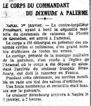 obsèques nationales célébrées à Toulon le 5 janvier 1924. A cette