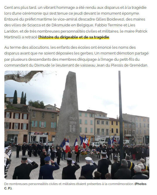 En 2013, commémoration de la disparition du dirigeable "Dixmude"