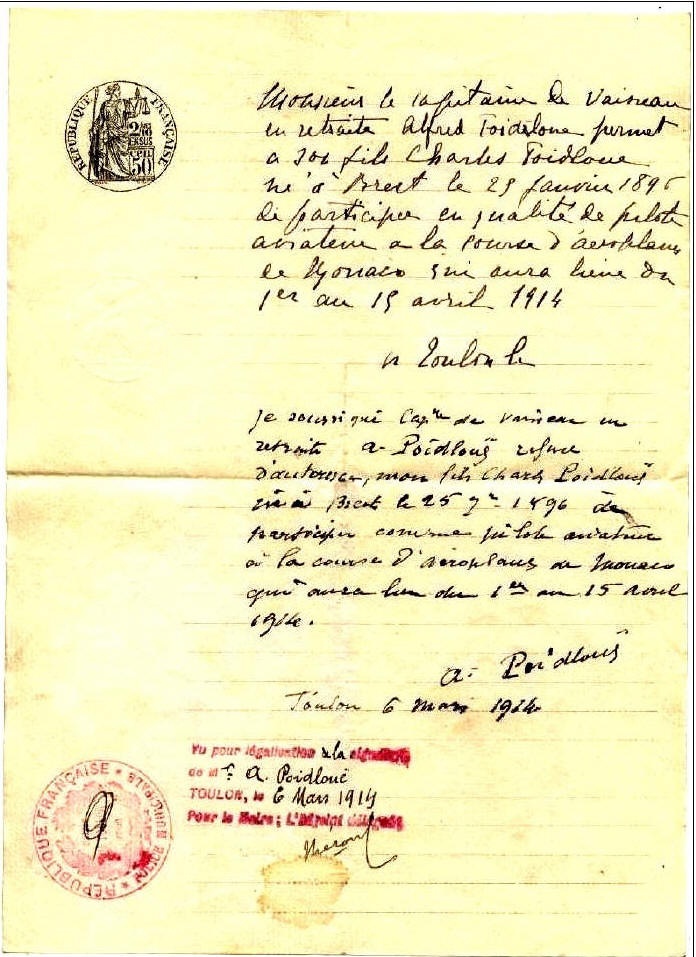 (signé) A Poidlouë Baptême du 2 avril 1914 à l'aérodrome d'Etampes.