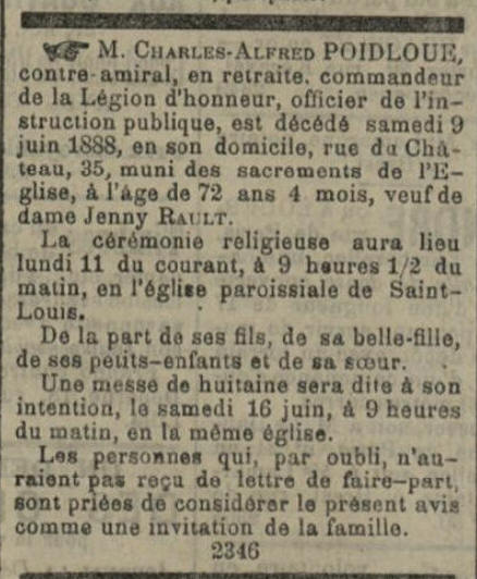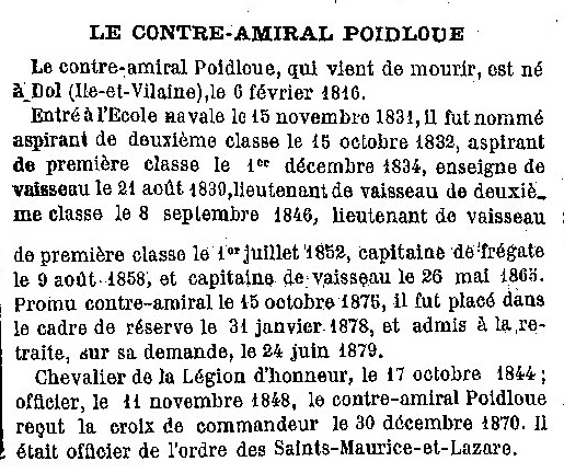 DOL de BRETAGNE (Ille et Vilaine) - Décédé le 9 juin 1888 à BREST