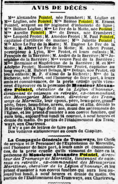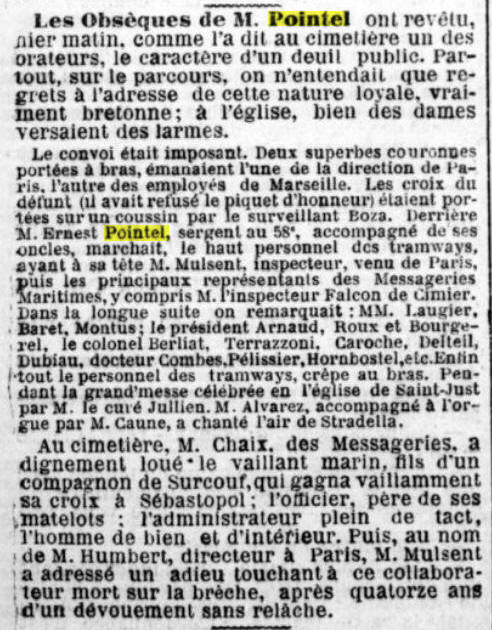 SUR MER (Ille & Vilaine) - Décédé le 22 février 1890 à MARSEILLE