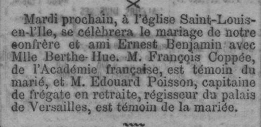 & Marne) - Décédé le 11 novembre 1897 à PARIS (Seine), au 50 rue