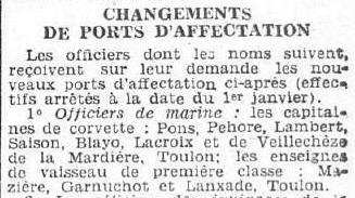 Lieutenant de vaisseau le 18 mai 1920.