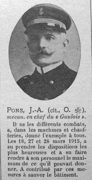 d'Honneur rang du 8 mai 1915 étant à bord du "GAULOIS".