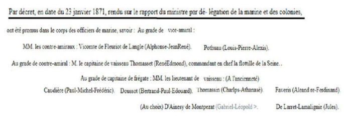 de vaisseau 15 octobre 1855), et contre-amiral (2 décembre 1864).