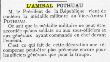 Le 18 février, l'amiral Pothuau fut nommé ambassadeur de la