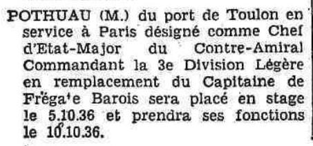 l'État-Major de la IIIème Région à TOULON.