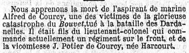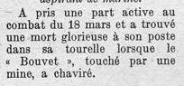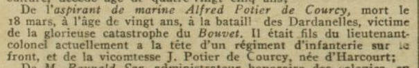 Le 18 mars 1915, Aspirant sur le cuirassé "BOUVET", il disparaît