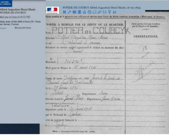 du 18 mars 1915 et trouvé une mort glorieuse à son poste, dans sa