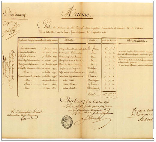Commissaire de 1ère classe en 1824 en poste à Cherbourg