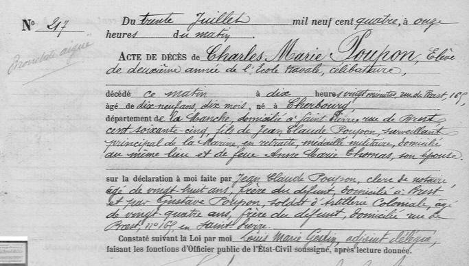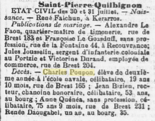- Décédé le 30 juillet 1904 à SAINT PIERRE QUILBIGNON (Aujourd'hui