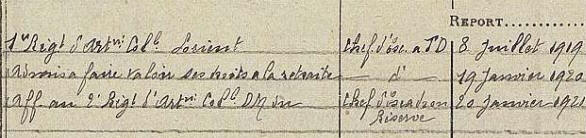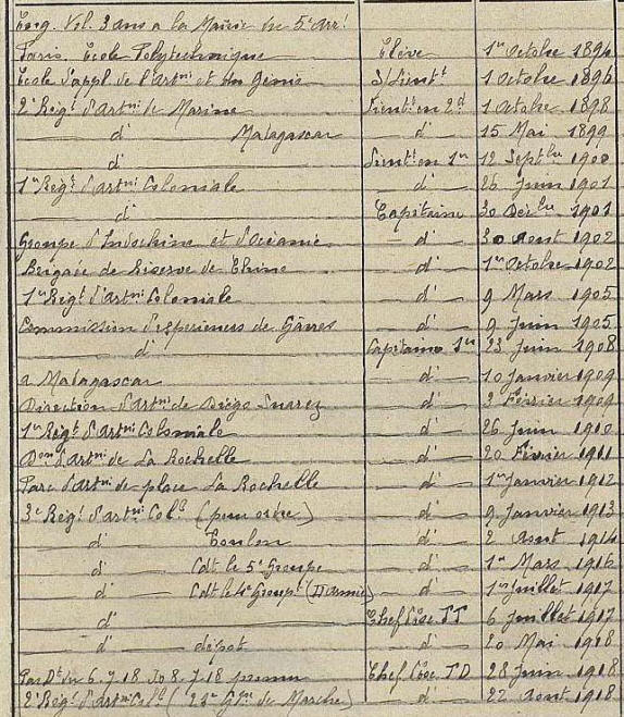 service à l'École d'application d'artillerie de FONTAINEBLEAU.