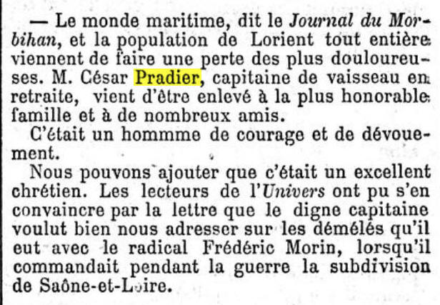 Au 1er janvier 1869, Major de la flotte à LORIENT, auprès du