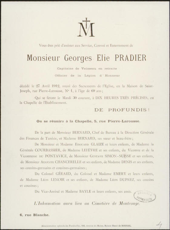 LORIENT (Morbihan) - Décédé le 27 avril 1912 à PARIS XIVème (Seine).