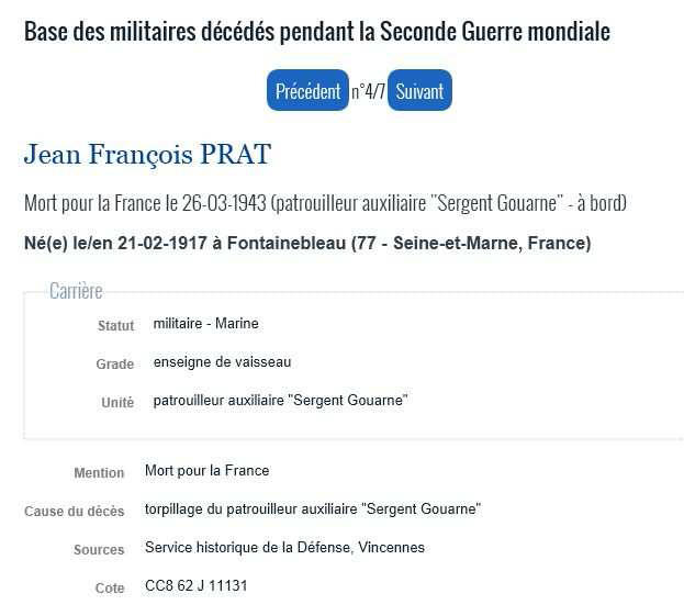 FONTAINEBLEAU (Seine-et-Marne) - Décédé le 26 mars 1943 en mer