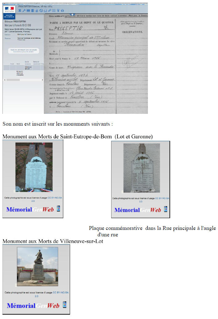 Né le Né le 18 septembre 1874 à VILLENEUVE-sur-LOT (Lot-et-Garonne)