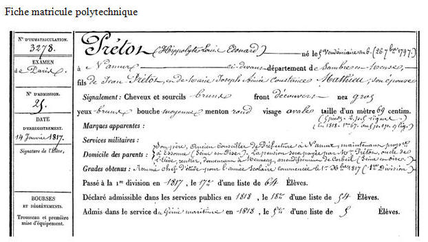 Admis le 1er septembre 1820, affecté au port de Brest sans avoir
