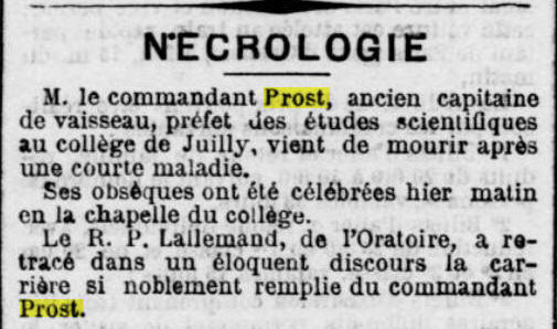 MONTREAL LA CLUSE (Ain) - Décédé le 16 mars 1893 à JUILLY (Seine et