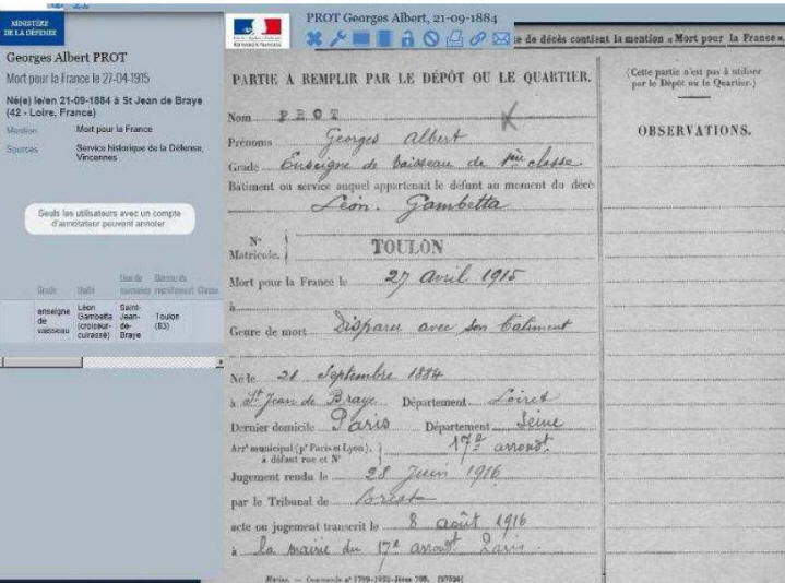 décès rendu le 28 juin 1916 à BREST et transcrit le 8 août 1916, à