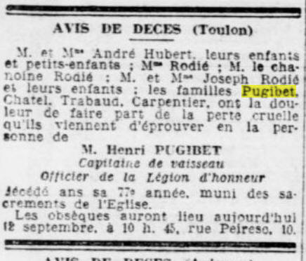 GIGEAN (Hérault) - Décédé le 11 septembre 1926 à TOULON (Var)