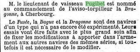 Commandant le "CALÉDONIEN", annexe à l'École de canonnage à TOULON.