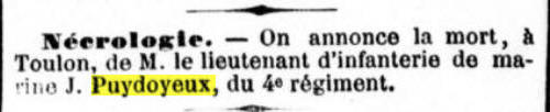 Né le 13 mai 1844 - Décédé en janvier 1878 à TOULON (Var)