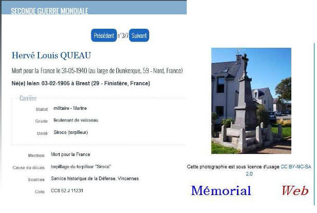 BREST (Finistère) - Décédé en mer le 31 mai 1940 au large de