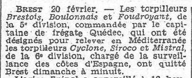 Commandant le torpilleur "BRESTOIS" le 1er septembre 1938.