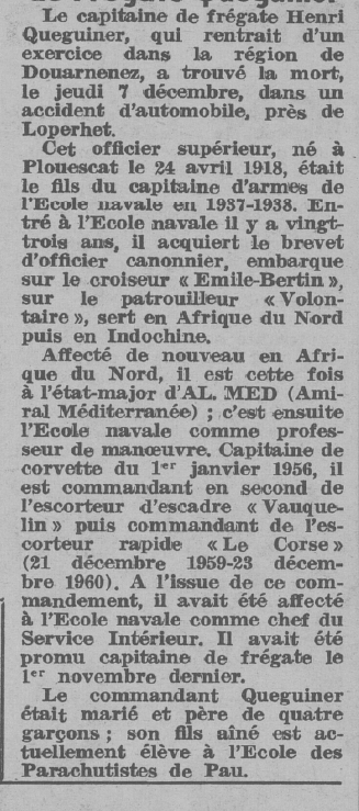 (Finistère) - Décédé le 7 décembre 1961 à LOPERHET (Finistère)