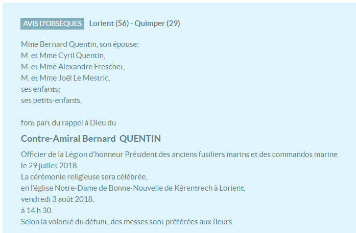 Décédé le 29 juillet 2018 à LORIENT (Morbihan)