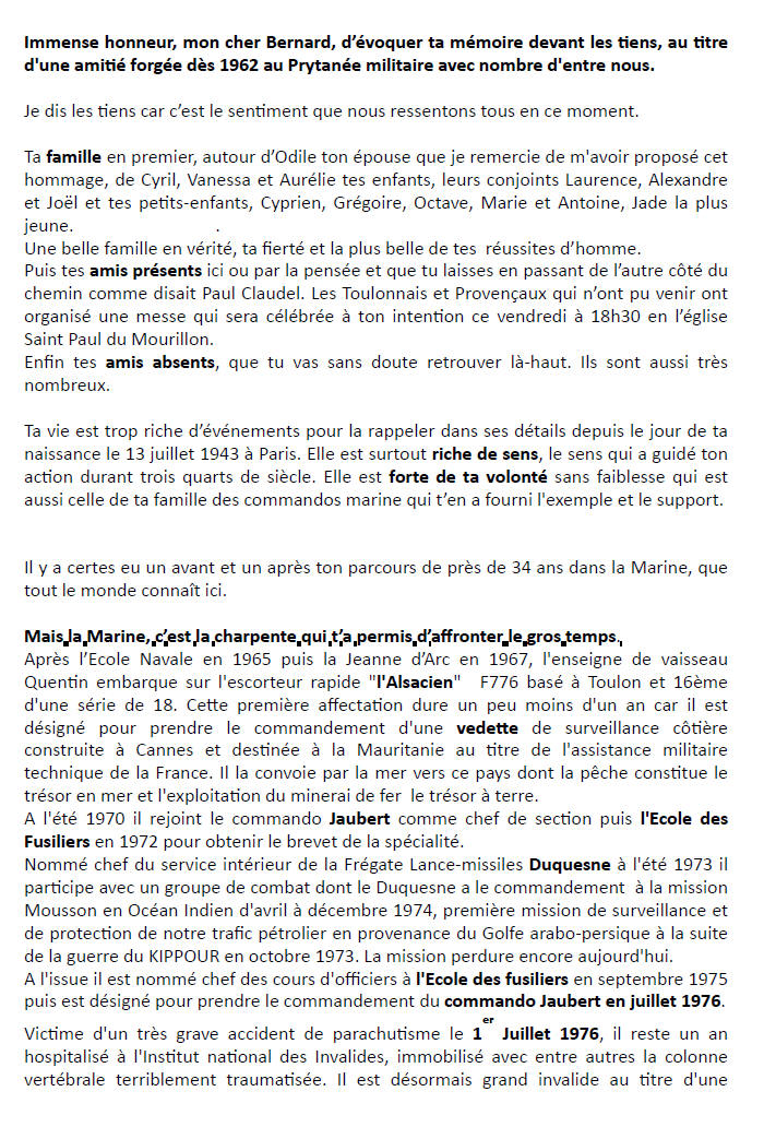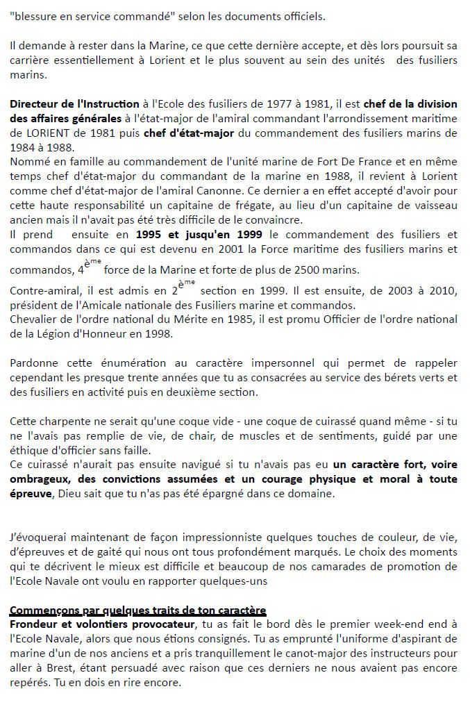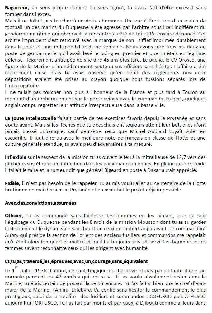 Eloge funèbre prononcé par l'amiral Alain Coldefy, camarade de